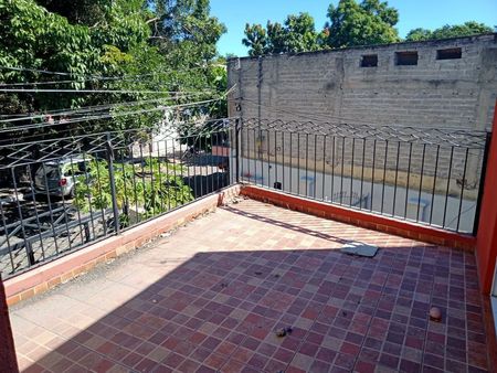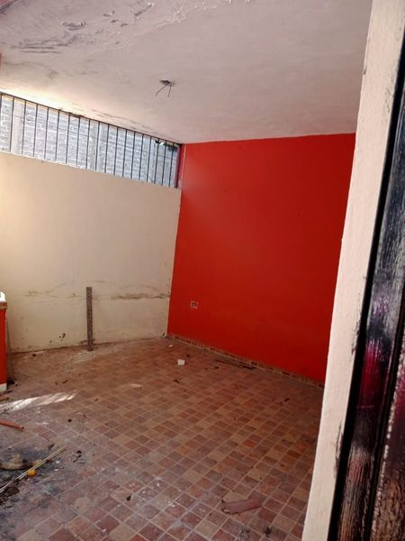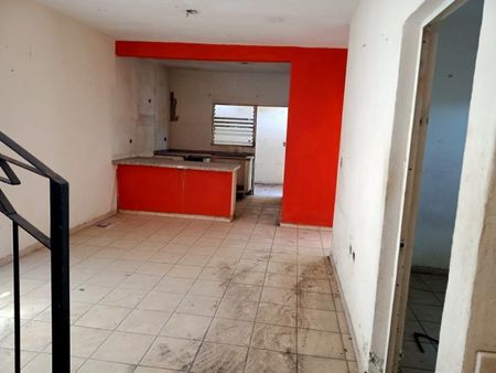 Casa de dos niveles, sala-comedor, área de cocina, 3 recamaras, 2 baños, patio y cochera un auto. Para remodelar